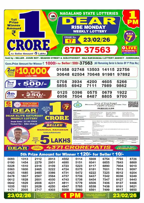 Dear Lottery is one of India’s most popular government lotteries, known for its transparent draws and life-changing prizes. The Nagaland State Lottery, along with Sikkim and West Bengal, conducts three draws daily-Morning (1 PM), Evening (6 PM), and Night (8 PM)-offering participants multiple chances to win big every day