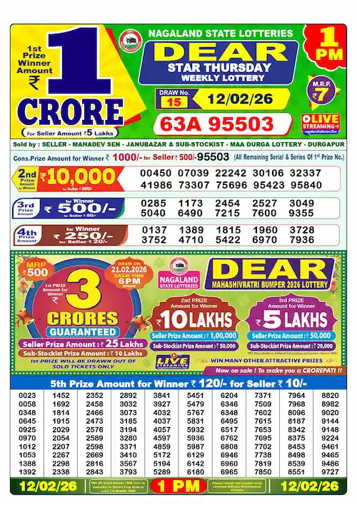 Make sure to visit daily for the morning lottery results and other draw updates. The Nagaland Dear Lottery result for 2026, has been published and is available for you to check here. Stay tuned for more updates and live results throughout the day.